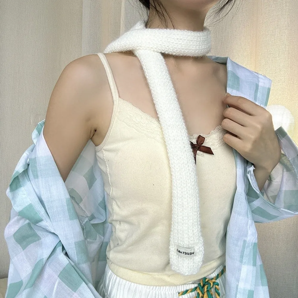 Écharpe Fine Tricotée - Couleur Unie Douce Automne/Hiver