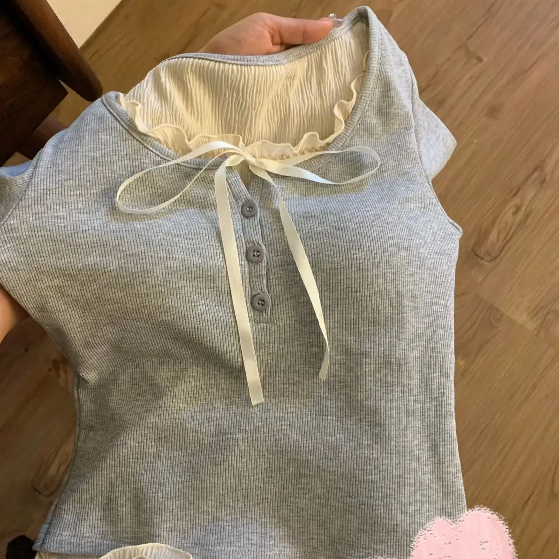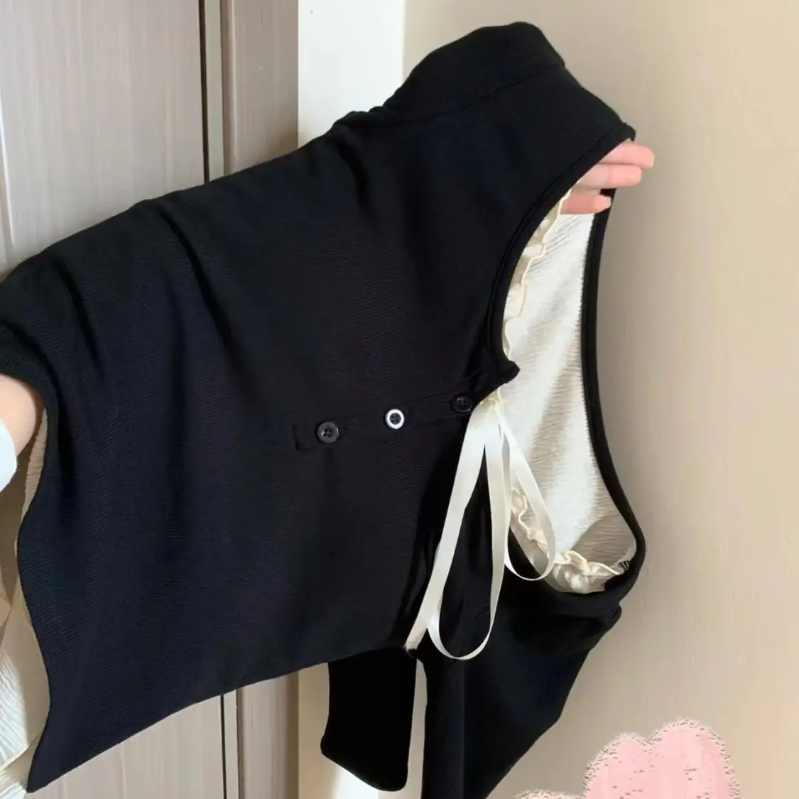 Matériau : Coton, Polyester • Style : Coréen chic décontracté • Détails : Patchwork, lacets • Coupe : Ajustée